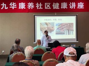 7月18日下午,王府医院走进九华山庄开展“健康知识讲座”。脑病科专家赵志英以“快速了解帕金森”为主题,为老人们分享了帕金森疾病的预防与治疗,线上+线下百余人参加。